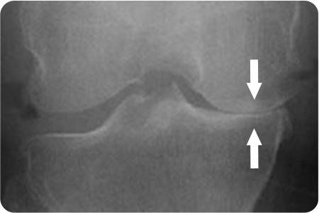 퇴행성 관절염으로 닳아버린 연골과 변형된
