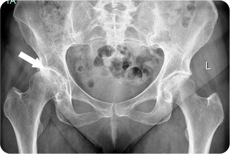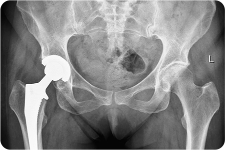 관절염으로 닳아버린 대퇴골두와 관골구를